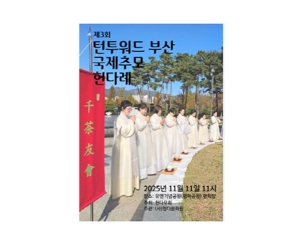 ºÎ»ê½Ã´Â 2019³âºÎÅÍ ¸Å³â À¯¿£ÀÇ ³¯(10¿ù 24ÀÏ)ºÎÅÍ À¯¿£ÂüÀü¿ë»ç ±¹Á¦Ã߸ðÀÇ ³¯±îÁö ¾à 3ÁÖ°£ ¼¼°è ÆòÈ Á߽ɵµ½Ã ºÎ»êÀ» ¾Ë¸®°í ÂüÀü¿ë»ç¸¦ Ã߸ðÇÏ´Â ¡®ºÎ»êÀ¯¿£À§Å©(UN Weeks in Busan)¡¯¸¦ °³ÃÖÇϰí ÀÖ´Ù. Çà»ç ±â°£ Áß ½Ã¹ÎÀÇ ´«±æÀ» »ç·ÎÀâ´Â ÇÁ·Î±×·¥ÀÌ ÀÖ´Ù. ¹Ù·Î ¡®ÅÏ Åõ¿öµå ºÎ»ê±¹Á¦Ã߸ð Çå´Ù·Ê¡¯ÀÌ´Ù. ¡®Ãµ´Ù¿ìȸ¡¯°¡ ÁÖÃÖÇÏ°í ©ÅÁ¤´Ù¹®È¿ø(¿øÀå ¼Á¤Çâ)ÀÌ ÁÖ°üÇÑ´Ù. ÀÌ Çà»ç´Â 6¡¤25ÀüÀï ´ç½Ã Çå½ÅÇÑ À¯¿£ ÂüÀü¿ë»ç¿¡ ´ëÇÑ Ã߸ð¿Í °¨»ç, ÂüÀü±¹°úÀÇ ¿¬´ë °È¸¦ ¸ñÀûÀ¸·Î ±âȹµÆ´Ù.