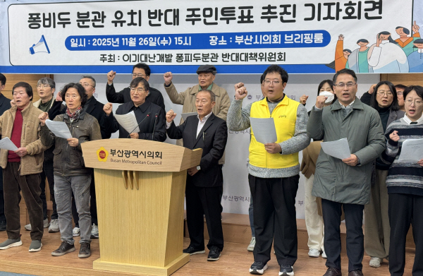 ¡®À̱â´ë ³­°³¹ß ÆþÇǵΠºÐ°ü ¹Ý´ë ´ëÃ¥À§¿øÈ¸¡¯´Â 26ÀÏ ºÎ»ê½ÃÀÇȸ ºê¸®Çη뿡¼­ ±âÀÚȸ°ßÀ» ¿­°í ¡°ºÎ»ê½Ã¹Î°ú Áö¿ª ¿¹¼ú°èÀÇ ÀǰßÀ» ¹«½ÃÇÑ ÆþÇǵΠºÐ°ü À¯Ä¡¿¡ ´ëÇØ ½Ã¹ÎÀÇ ÀǰßÀ» Á÷Á¢ ¹¯°Ú´Ù¡±¸ç ÁÖ¹ÎÅõÇ¥ ÃßÁø °èȹÀ» °ø½ÄÈ­Çß´Ù.