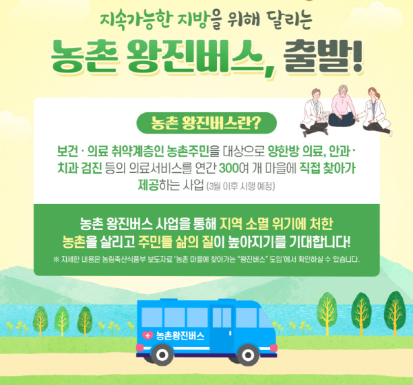 2ÀÏ ³ó¸²Ãà»ê½ÄǰºÎ´Â ³»³âµµ ³óÃÌ ¿ÕÁø¹ö½º ´ë»ó Áö¿ªÀ¸·Î 112°³ ½Ã¡¤±º(353°÷)À» ¼±Á¤Çß´Ù°í ¹àÇû´Ù. ¿ÃÇØº¸´Ù 21°³(89°÷)°¡ ¸¹´Ù. ³óÃÌ ¿ÕÁø¹ö½º »ç¾÷Àº À¾¡¤¸éÀ» Á÷Á¢ ã¾Æ°¡ ¾ç¡¤Çѹæ, ±¸°­ °ËÁø, °Ë¾È, ±Ù°ñ°Ý°è Áúȯ Áø·á µîÀ» Á¦°øÇÏ´Â °ÍÀÌ ÇÙ½ÉÀÌ´Ù. Áö³­ 2024³âºÎÅÍ ³ó½ÄǰºÎ, ÁöÀÚü, ³óÇùÁß¾Óȸ, Áö¿ª³óÇù µîÀÌ ÇÔ²² ÃßÁøÇϰí ÀÖ´Ù. ³»³â ¿¹»êÀº 46¾ï7000¸¸ ¿øÀ¸·Î 2025³â¿¡ ºñÇØ 7¾ï ¿øÀÌ Áõ¾×µÆ´Ù.