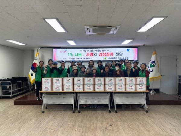 ¿¬Á¦±¸ °ÅÁ¦1µ¿ »õ¸¶À»¹®°í(ȸÀå ±èÇý¼÷)´Â 12¿ù 5ÀÏ 20¿© ¸íÀÌ Âü¿©ÇÑ °¡¿îµ¥ Ȧ·Î ¾î¸£½ÅµéÀÇ µû¶æÇÑ °Ü¿ï³ª±â¸¦ À§ÇØ Á÷Á¢ ´ã±Ù ±èÀå±èÄ¡ 20¹Ú½º¸¦ Àü´ÞÇÏ´Â ¡®1% ³ª´®, »ç¶ûÀÇ ±èÀå±èÄ¡ Àü´Þ¡¯ Çà»ç¸¦ ½Ç½ÃÇß´Ù.