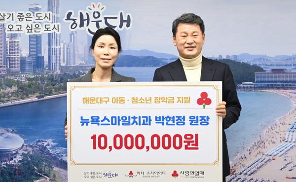 ´º¿å½º¸¶ÀÏÄ¡°úÀÇ¿ø ¹ÚÇöÁ¤ ¿øÀå(ºÎ»ê¾Æ³Ê 130È£)Àº Áö³­ 20ÀÏ ÇØ¿î´ë±¸Ã»¿¡¼­ ¿¬¸» ÀÌ¿ôµ½±â ¼º±Ý 1000¸¸ ¿øÀ» Àü´Þ(»çÁø)Çß´Ù. À̳¯ ¼º±ÝÀº ºÎ»ê»çȸº¹Áö°øµ¿¸ð±Ýȸ¸¦ ÅëÇØ ÇØ¿î´ë±¸¿¡ °ÅÁÖÇÏ´Â Àú¼Òµæ ¾Æµ¿¡¤Ã»¼Ò³âµéÀÇ ÀåÇбÝÀ¸·Î »ç¿ëµÈ´Ù. Àü´Þ½Ä¿¡´Â ¹Ú ¿øÀåÀ» ºñ·ÔÇØ ÇØ¿î´ë±¸ ±è¼º¼ö ±¸Ã»Àå, ºÎ»ê»ç¶ûÀÇ¿­¸Å ¹Ú¼±¿í »ç¹«Ã³Àå, KÇÁ·»Áî °í¼®¹® »ç¹«ÃÑÀåÀÌ Âü¼®Çß´Ù.