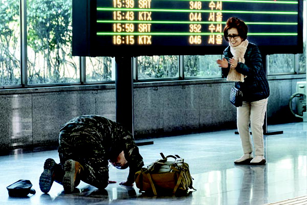 ¼³ ¿¬ÈÞ¸¦ ÀÌÆ² ¾ÕµÐ 12ÀÏ ¿ÀÈÄ ºÎ»ê µ¿±¸ ºÎ»ê¿ª¿¡¼­ ÀÔ´ë ÈÄ Ã¹ ÈÞ°¡¸¦ ³ª¿Â ÇØº´ÀÌ Å« ÀýÀ» ÇÏÀÚ ÇҸӴϰ¡ ȯÇÑ ¹Ì¼Ò·Î ¹Ý±â°í ÀÖ´Ù.