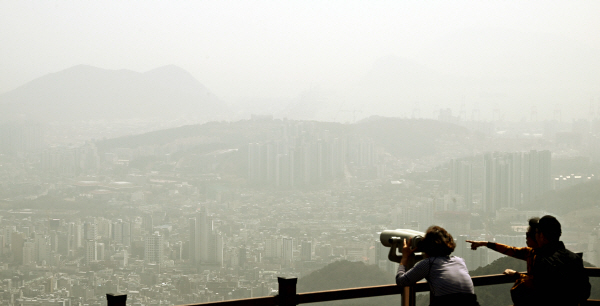 Ȳ»ç¿Í ¹Ì¼¼¸ÕÁö ³óµµ°¡ ³ª»ÝÀ» º¸ÀÎ ³¯, ºÎ»ê Ȳ·É»êÀü¸Á´ë¿¡¼­ ¹Ù¶óº» µµ½ÉÀÌ ¸ÕÁö·Î µÚµ¤Çô ÀÖ´Ù. ±¹Á¦½Å¹®DB