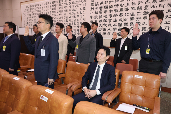 ¡®½Ö¹æ¿ï ´ëºÏ ¼Û±Ý¡¯ »ç°ÇÀ» ¼ö»çÇß´ø ¹Ú»ó¿ë ÀÎõÁö¹æ°ËÂûû ºÎºÎÀå°Ë»ç°¡ 3ÀÏ ±¹È¸¿¡¼­ ¿­¸° ¡®À±¼®¿­Á¤±Ç Á¤Ä¡°ËÂûÁ¶ÀÛ±â¼Ò ÀÇȤ»ç°Ç Áø»ó±Ô¸í¡¯ ±¹Á¤Á¶»çƯº°À§¿øÈ¸ ÀüüȸÀÇ¿¡¼­ ÁõÀμ±¼­¸¦ °ÅºÎÇÑ Ã¤ ÁõÀμ®¿¡ ¾É¾Æ ÀÖ´Ù. ¿¬ÇÕ´º½º