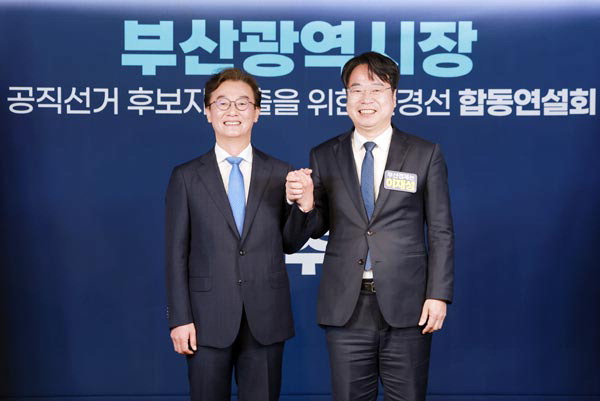 ´õºÒ¾î¹ÎÁÖ´ç 6¡¤3 ºÎ»ê½ÃÀå Èĺ¸ °æ¼± ÁÖÀÚÀÎ ÀüÀç¼ö(ºÏ°©) ÀÇ¿ø°ú ÀÌÀ缺 Àü ½Ã´çÀ§¿øÀåÀÌ 6ÀÏ º»°æ¼± ÇÕµ¿¿¬¼³È¸¿¡¼­ ÀÚ½ÅÀ» ¡®Çؾç¼öµµ ¿Ï¼º ÀûÀÓÀÚ¡¯¶ó°í ³»¼¼¿ì¸ç ÁöÁö¸¦ È£¼ÒÇß´Ù. À̳¯ ¿¬¼³È¸´Â 7ÀϺÎÅÍ 9ÀϱîÁö »çÈê°£ ÁøÇàµÇ´Â º»°æ¼± ÀÏÁ¤À» ¾ÕµÎ°í ÁøÇàµÆ´Ù.