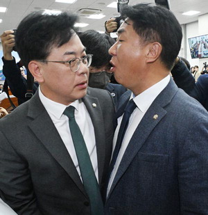À̳¯ ´õºÒ¾î¹ÎÁÖ´ç äÇöÀÏ ÀÇ¿øÀÌ ÁÖÁø¿ì ÀÇ¿øÀÇ ÀÌÇØÃæµ¹À» ÁöÀûÇÏÀÚ ÁÖ ÀÇ¿øÀº ¡°±è ½ÇÀå ÀÇȤ Á¦±â¿¡ ¹ÎÁÖ´çÀÌ Á¶Á÷ÀûÀ¸·Î ¡®ÀÔÆ²¸·¡¯ÇÏ´Â °Í¡±À̶ó°í ¸Â¹Þ¾Ò´Ù. À̶§ºÎÅÍ ¿©¾ß °£¿¡ °í¼ºÀÌ ¿À°¡¸é¼ ±¹°¨Àº ½ÃÀÛ 59ºÐ ¸¸¿¡ Á¤È¸Çߴµ¥, ÀÇ¿øµéÀÌ ÅðÀåÇÏ´Â Áß¿¡ ±¹¹ÎÀÇÈû ¼Û¾ð¼® ¿ø³»´ëÇ¥¿Í ¹ÎÁÖ´ç À̱âÇå ÀÇ¿øÀÌ ¡®¹èÄ¡±â¡¯¸¦ ÇÏ¸ç ±â½Î¿òÀ» ¹ú¿´´Ù. µÎ ÀÇ¿ø ¸ðµÎ »ó´ë¹æÀÌ ¸ÕÀú ¸öÀ» ºÎµúÇô¿Ô´Ù°í ÁÖÀåÇÏ¸ç »ó´ë Å¿À» Çß´Ù. ¼Û ¿ø³»´ëÇ¥´Â ¡°¾ß´ç ¿ø³»´ëÇ¥¸¦ ÇâÇØ Å×·¯¿Í À¯»çÇÑ Æø·Â ÇàÀ§°¡ ¹ß»ýÇÑ µ¥ ´ë´ÜÈ÷ ±íÀº À¯°¨À» Ç¥½ÃÇÑ´Ù¡±¸ç ÀÌ ÀÇ¿ø°ú ±èº´±â ±¹È¸ ¿î¿µÀ§¿øÀåÀÇ »ç°ú¸¦ ¿ä±¸Çß´Ù.