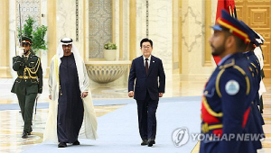 | ÀÌÀç¸í ´ëÅë·ÉÀÌ 18ÀÏ(ÇöÁö½Ã°£) ¾Æ¶ø¿¡¹Ì¸®Æ®(UAE) ¾ÆºÎ´Ùºñ ´ëÅë·É±Ã¿¡¼ ¿¸° ±¹ºó¹æ¹® °ø½Ä ȯ¿µ½Ä¿¡¼ ¹«ÇÔ¸¶µå ºó ÀÚÀÌµå ¾Ë ³ªÈå¾á UAE ´ëÅë·É°ú ÀÇÀå´ë¸¦ »ç¿Çϰí ÀÖ´Ù. ¿¬ÇÕ´º½º