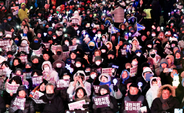 ¼­¿ï ¿©Àǵµ ±¹È¸ÀÇ»ç´ç Á¤¹® ¾Õ¿¡¼­ ¿­¸° ¡®12.3 ³»¶õ ¿Üȯ û»ê°ú Á¾½Ä, »çȸ ´ë°³Çõ ½Ã¹Î ´ëÇàÁø¡¯ Áýȸ¿¡¼­ Âü°¡ÀÚµéÀÌ ÀÀ¿øºÀÀ» µé°í ÀÖ´Ù. ¿¬ÇÕ´º½º