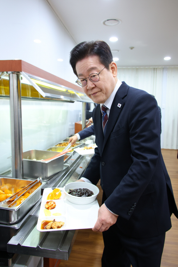 ÀÌÀç¸í ´ëÅë·ÉÀÌ 26ÀÏ ÃâÀÔ±âÀÚ¿ÍÀÇ ¿ÀÂùÀ» À§ÇØ Ã»¿Í´ë ÃáÃß°ü ±¸³»½Ä´çÀ» ã¾Æ ½ÄÆÇ¿¡ À½½ÄÀ» ´ã°í ÀÖ´Ù. 2026.2.26 [û¿Í´ëÅë½Å»çÁø±âÀÚ´Ü]