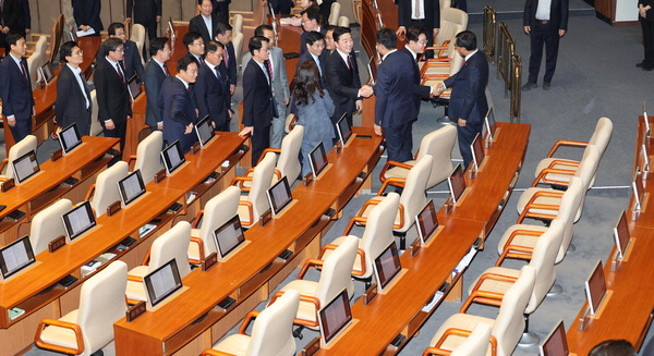 ±¹¹ÎÀÇÈûÀº ¹ÎÁÖ´çÀÌ 4¿ù Àӽñ¹È¸ ³» Ưº°¹ýÀ» ó¸®ÇÒ °ÍÀ¸·Î º»´Ù. ¿©¾ß ¸ðµÎ ¼±°Å üÁ¦·Î º»°Ý ÀüȯµÇ¸é 5¿ù ÀÌÈÄ Ã³¸®°¡ ½±Áö¾Ê±â ¶§¹®ÀÌ´Ù. ¹ý»çÀ§ »óÁ¤¿¡ Á¦µ¿À» °É¾ú´ø ¹ÎÁÖ´ç ±è¿ë¹Î °£»çµµ ´ÙÀ½ ȸÀÇ ¶§ »óÁ¤ÇØ ÁÖ±â·Î ±¹¹ÎÀÇÈû°ú ÇÕÀÇÇÑ °ÍÀ¸·Î ¾Ë·ÁÁ³´Ù. ´Ù¸¸ ´ÙÀ½ ¹ý»çÀ§ ÀÏÁ¤Àº ¿©ÀüÈ÷ ºÒÅõ¸íÇÑ »óȲÀÌ´Ù.