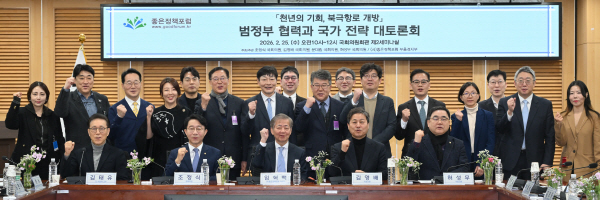 ´õºÒ¾î¹ÎÁÖ´ç Á¶Á¤½Ä ±è¿µ¹è ¹®´ë¸² Ç㼺¹« ±¹È¸ÀÇ¿øÀÌ ÁÖ°üÇØ 25ÀÏ ±¹È¸¿¡¼­ ¿­¸° ¡®Ãµ³âÀÇ ±âȸ, ºÏ±ØÇ×·Î °³¹ß ¹üÁ¤ºÎÇù·Â°ú ±¹°¡ Àü·« ´ëÅä·Ðȸ¡¯¿¡¼­ Âü¼®ÀÚµéÀÌ ±â³äÃÔ¿µÀ» Çϰí ÀÖ´Ù. µÞÁÙ ¿À¸¥ÂÊ ´Ù¼¸ ¹ø °´Â Åä·ÐÀÚ·Î Âü¼®ÇÑ ±¹Á¦½Å¹® ¹Ú¼öÇö ¹®È­»ç¾÷±¹Àå. ±èÁ¤·Ï ±âÀÚ