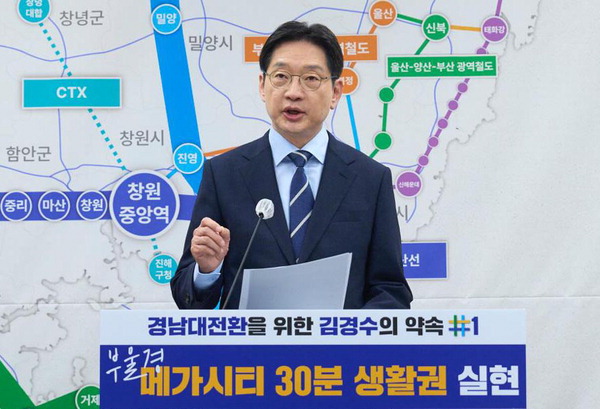 ´õºÒ¾î¹ÎÁÖ´ç 6¡¤3 °æ³²µµÁö»ç Èĺ¸ÀÎ ±è°æ¼ö(59) Àü Áö»ç°¡ ¡®ºÎ¿ï°æ ¸Þ°¡½ÃƼ º¹¿ø¡¯À» °Á¶ÇÏ¸é¼ °æ³²¿¡¼ ºÎ»ê°ú ¿ï»êÀ» 30ºÐ´ë¿¡ ¿À°¥ ¼ö ÀÖ´Â 4´ë öµµ¸Á ±¸Ãà µî ¡®´ëÁß±³Åë ´ëÀüȯ¡¯À» °ø¾àÇß´Ù.