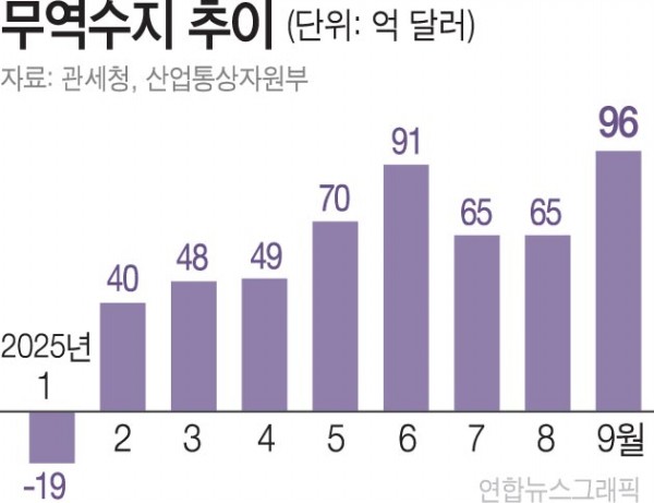 »ê¾÷Åë»óÀÚ¿øºÎ°¡ 1ÀÏ ¹ßÇ¥ÇÑ ¡®2025³â 9¿ù ¼öÃâÀÔ µ¿Ç⡯ ÀڷḦ º¸¸é Áö³´Þ ±¹³» Àüü ¼öÃâ¾×Àº 1³â Àü °°Àº ´Þº¸´Ù 12.7% Áõ°¡ÇÑ 659¾ï5000¸¸ ´Þ·¯·Î 2022³â 3¿ù ÀÌÈÄ 3³â 6°³¿ù ¸¸¿¡ »ç»ó ÃÖ´ë ±â·ÏÀ» °¥¾ÆÄ¡¿ü´Ù.