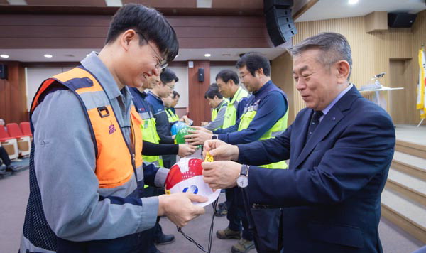 À̳¯ Çà»ç¿¡¼ ±èÁص¿ »çÀåÀº ÀÛ¾÷ÁßÁö±ÇÀ» °¡Àå ¸¹ÀÌ »ç¿ëÇÑ ÇöÀå ³ëµ¿ÀÚ »óÀ§ 10¸í¿¡°Ô Æ÷»ó±ÝÀ» ¼ö¿©Çß´Ù. ÀÌ¾î ³²ºÎ¹ßÀü°ú 8°³ Çù·Â»ç Á÷¿øµéÀÇ ¾ÈÀü¸ð¿¡ À̸§ ½ºÆ¼Ä¿¸¦ ºÙ¿©ÁÖ´Â ¡®¾ÈÀü¸ð ½Ç¸í ½ºÆ¼Ä¿ ºÎÂø½Ä¡¯À» ¿°í, ¾ÈÀü¼öÄ¢ Áؼö ÀÇÁö¸¦ µÇ»õ°å´Ù.