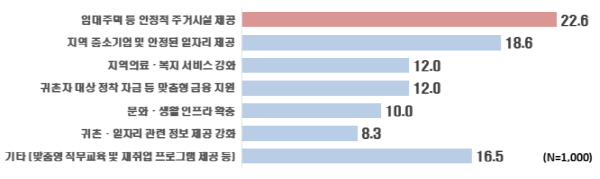 ¼öµµ±Ç º£À̺ñ ºÎ¸ÓµéÀº ¡®3ÀÚ ¿¬ÇÕ¡¯ ¸ðµ¨ÀÇ È°¼ºÈ¸¦ À§ÇÑ Á¤Ã¥°úÁ¦·Î ¡®ÀÓ´ëÁÖÅà µî ¾ÈÁ¤Àû ÁְŽü³ Á¦°ø(22.6%)¡¯À» °¡Àå ¸¹ÀÌ ²Å¾Ò´Ù. À̾î Áö¿ª Áß¼Ò±â¾÷ ¹× ¾ÈÁ¤µÈ ÀÏÀÚ¸® Á¦°ø(18.6%), Áö¿ªÀǷᡤº¹Áö ¼ºñ½º °È(°øµ¿ 12.0%), ±ÍÃÌÀÚ ´ë»ó Á¤Âø ÀÚ±Ý µî ¸ÂÃãÇü ±ÝÀ¶ Áö¿ø(°øµ¿ 12.0%) ¼øÀ̾ú´Ù.