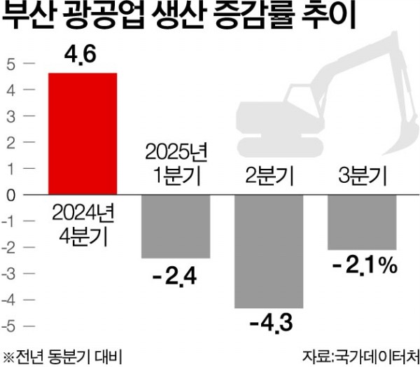 ±¹°¡µ¥ÀÌÅÍó´Â ¡°¿ÃÇØ 3ºÐ±â ºÎ»ê Àü±â¡¤°¡½º¾÷(-36.4%)°ú ±âŸ ¿î¼ÛÀåºñ(-24.3%) µîÀÇ »ý»êÀÌ ÁÙ¾îµç °ÍÀÌ Áö¿ª Àüü ±¤°ø¾÷ »ý»ê °¨¼Ò¿¡ ¿µÇâÀ» ¹ÌÃÆ´Ù¡±°í ¼³¸íÇß´Ù.