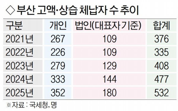¿ÃÇØ ºÎ»êÁö¿ª °í¾×¡¤»ó½À ü³³ÀÚ ¼ö´Â °³ÀÎ 352¸í, ¹ýÀÎ 180¸íÀ¸·Î ÃÑ 532¸í¿¡ ´ÞÇß´Ù. ÀÌ´Â Áö³­ÇØ 477¸í(°³ÀÎ 333¸í¡¤¹ýÀÎ 144¸í)º¸´Ù 55¸í(11.5%) ´Ã¾î³­ °ÍÀÌ´Ù.