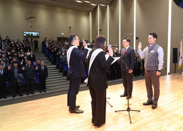 À̳¯ ¿ÀÀü °æ¿µÁø°ú º»»ç ÁÖ¿ä °£ºÎµéÀº º»»ç ¾Õ¸¶´ç¿¡ ¸ð¿© ¾à 30ºÐ°£ ÇÕµ¿ ¾ÈÀü±â¿ø Çà»ç¸¦ ÁøÇàÇß´Ù. ±â¿ø Çà»ç´Â 2026³â ¹«ÀçÇØ¸¦ À¯ÁöÇϰí ÇöÀå ¾ÈÀüÀÌ ÁöÄÑÁö´Â ¡®¾ÈÀü ÃÖ¿ì¼±¡¯ÀÇ °æ¿µ ¿øÄ¢À» °¡½¿¿¡ »õ±â´Â ÃëÁö·Î ¸¶·ÃµÆ´Ù.