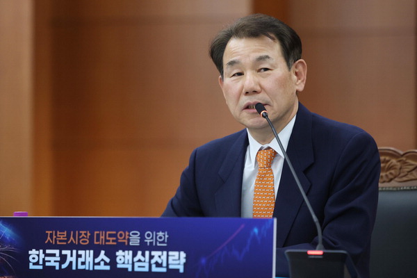 Á¤Àºº¸ Çѱ¹°Å·¡¼Ò ÀÌ»çÀåÀÌ 5ÀÏ ¼­¿ï ¿©Àǵµ Çѱ¹°Å·¡¼Ò¿¡¼­ 'ÀÚº»½ÃÀå ´ëµµ¾àÀ» À§ÇÑ Çѱ¹°Å·¡¼Ò ÇÙ½ÉÀü·«' ÁÖÁ¦·Î ¿­¸° ½Å³â ±âÀÚ°£´ãȸ¿¡¼­ ¹ß¾ðÇϰí ÀÖ´Ù. ¿¬ÇÕ´º½º
