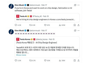 ¸Ó½ºÅ© CEO´Â 17ÀÏ(ÇöÁö½Ã°£) ÀÚ½ÅÀÇ X(¿¾ Æ®À§ÅÍ)¿¡ Å×½½¶óÄÚ¸®¾ÆÀÇ AI Ĩ µðÀÚÀÎ ¿£Áö´Ï¾î ä¿ë °ø°í¸¦ °øÀ¯Çϸç 16°³ÀÇ Å±رâ À̸ðƼÄÜÀ» ¿Ã·È´Ù. ±×´Â ¡°¸¸¾à ´ç½ÅÀÌ Çѱ¹¿¡ °ÅÁÖÇϰí ÀÖ°í Ĩ µðÀÚÀÎ, ÆÐºê¸®ÄÉÀ̼Ç(ÆÕ), ÀΰøÁö´É(AI) ¼ÒÇÁÆ®¿þ¾î ºÐ¾ß¿¡¼ ÀÏÇÏ°í ½Í´Ù¸é Å×½½¶ó¿¡ Áö¿øÇ϶󡱰í Àû¾ú´Ù.