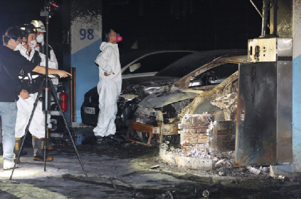 2024³â 8¿ù 2ÀÏ ÀÎõ ¼­±¸ û¶ó ¾ÆÆÄÆ® ÁöÇÏ ÁÖÂ÷Àå È­Àç ÇöÀå¿¡¼­ °æÂû°ú ¼Ò¹æ µî °ü°èÀÚµéÀÌ È­Àç ¹ß»ý Àü±âÂ÷¿¡ ´ëÇÑ ÇÕµ¿ °¨½ÄÀ» Çϰí ÀÖ´Ù. ¿¬ÇÕ´º½º