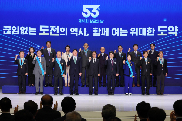 ´ëÇÑ»ó°øÈ¸ÀǼҴ 31ÀÏ ¿ÀÈÄ ¼¿ï Áß±¸ »ó°øÈ¸ÀÇ¼Ò È¸°ü¿¡¼ Á¦53ȸ »ó°øÀÇ ³¯ ±â³ä½ÄÀ» ¿¾î À§±â ±Øº¹°ú ´ëÇѹα¹ ¼ºÀå ¹ßÀü¿¡ ±â¿©ÇÑ »ó°øÀÎ 264¸í¿¡°Ô Æ÷»óÇß´Ù.