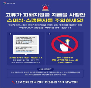Á¤ºÎ°¡ °íÀ¯°¡ ÇÇÇØÁö¿ø±Ý ½Åû¡¤Áö±ÞÀ» ¾ÕµÎ°í À̸¦ »çĪÇÑ ½º¹Ì½Ì(¹®ÀÚ¸Þ½ÃÁö¸¦ ÀÌ¿ëÇÑ ÇÇ½Ì »ç±â)¿¡ ÁÖÀÇÇØ ´Þ¶ó°í ´çºÎÇß´Ù.