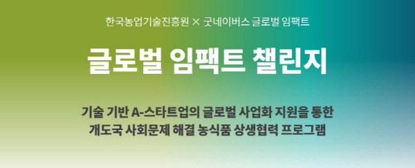 ÇÑÆí ³óÁø¿øÀº ¡®Á¦2±â ÇØ¿Ü ³ó½Äǰ ¹®Á¦ÇØ°á µµÀü ÇÁ·Î±×·¥¡¯(±Û·Î¹ú ÀÓÆÑÆ® 縰Áö) Âü¿© ±â¾÷µµ ¸ðÁýÇÑ´Ù. ¡®±Â³×À̹ö½º ±Û·Î¹ú ÀÓÆÑÆ®¡¯¿Í ÇÔ²² ÇÏ´Â ÀÌ »ç¾÷Àº °³¹ßµµ»ó±¹ ³ó½Äǰ »ê¾÷ ÇöÀå¿¡¼­ °Þ´Â ¹®Á¦¸¦ ÇØ°áÇÒ ¼ö ÀÖ´Â ±â¼ú°ú »ç¾÷ ¸ðÇüÀ» °¡Áø À¯¸Á ±â¾÷À» Áö¿øÇÏÀÚ´Â °ÍÀÌ ÃëÁö´Ù. Âü¿© ±â¾÷Àº ±Û·Î¹ú ÀÓÆÑÆ®°¡ Àü ¼¼°è 26°³±¹¿¡¼­ ¿î¿µÇÏ´Â »ç¾÷Àå¿¡¼­ ±â¼úÀ» ½ÃÇèÇÒ ¼ö ÀÖ´Ù.