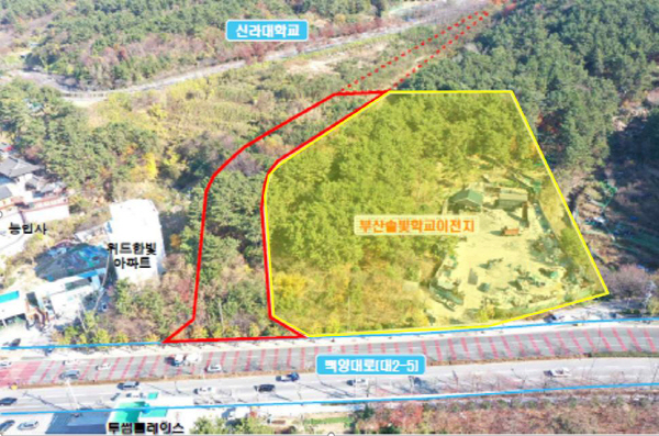 21ÀÏ ½Ã±³À°Ã»¿¡ µû¸£¸é ºÎ»ê¼ÖºûÇб³ ÀÌÀüºÎÁöÀÎ »ç»ó±¸ ±¥¹ýµ¿ ÀÏ¿ø 1¸¸9108§³¿¡ Áö³ 13ÀÏ ±³»ç ½ÅÃà°ø»ç¸¦ ½ÃÀÛÇß´Ù. ½Ã±³À°Ã»Àº ¿À´Â 2026³â 3¿ù ÀÌÀü °³±³¸¦ ¸ñÇ¥·Î ÇÑ´Ù. 2003³â ¹®À» ¿¬ ºÎ»ê¼ÖºûÇб³´Â »ç»ó¡¤ºÏ±¸Áö¿ª Ư¼ö±³À° ´ë»óÀÚ 184¸í(35ÇбÞ)ÀÌ ÀçÇÐ ÁßÀÌ´Ù. ÇöÀç Çб³°¡ °øÀå¿¡ µÑ·¯½Î¿´°í, ¿Õº¹ 8Â÷·ÎÀÎ ³«µ¿´ë±³ ¹Ù·Î ¿·¿¡ ÀÖ¾î ÇлýÀÌ ½É°¢ÇÑ ¼ÒÀ½°ú ¸Å¿¬¿¡ ½Ã´Þ¸®°í ÀÖ´Ù. ÀÌ ¶§¹®¿¡ ÇкθðµéÀº Çб³ ÀÌÀüÀ» Áö¼ÓÀûÀ¸·Î ¿ä±¸Çß°í, 2020³â Çб³ ÀÌÀü¾ÈÀÌ ±³À°ºÎ ÁßÅõ½É»ç¸¦ Åë°úÇÏ¸é¼ ¿ÃÇØ 9¿ù ÀÌÀü °³±³ÇÒ °èȹÀ̾ú´Ù.