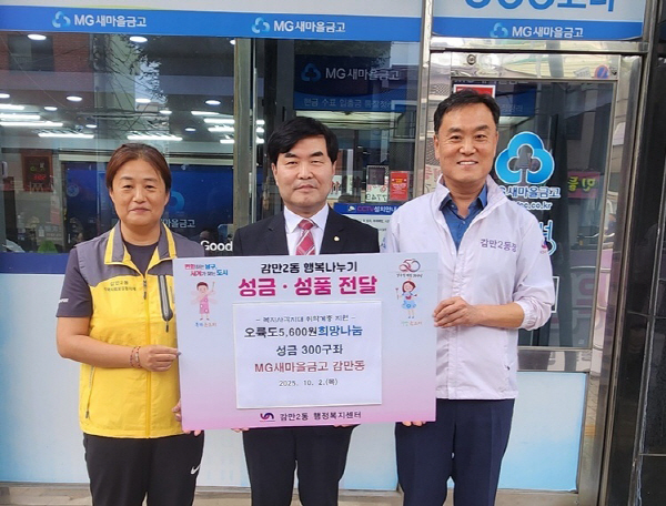 ºÎ»ê ³²±¸ °¨¸¸2µ¿¿¡ ¼ÒÀçÇÑ MG»õ¸¶À»±Ý°í °¨¸¸µ¿(ÀÌ»çÀå ¹ÚÇü±â) ÁöÁ¡Àº Áö¿ª»çȸ¿Í ÇÔ²²ÇÏ´Â ³ª´® Ȱµ¿ÀÇ ÀÏȯÀ¸·Î ¡®¿À·úµµ 5,600¿ø Èñ¸Á³ª´®»ç¾÷¡¯À» ÅëÇØ ¸ð±ÝÇÑ ¼º±ÝÀ» Áö¿ª º¹Áö»ç°¢Áö´ë Ãë¾à°èÃþÀ» À§ÇØ ±âºÎÇß´Ù°í ¹àÇû´Ù.