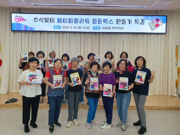 ¿¬Á¦±¸ °ÅÁ¦4µ¿ ÁÖ¹ÎÀÚġȸ(ȸÀå ±è¿µ´Þ)´Â 9¿ù 30ÀÏ µ¿ ÇàÁ¤º¹Áö¼¾ÅÍ 4Ãþ ´Ù¸ñÀû°´ç¿¡¼ Ãß¼®¸ÂÀÌ ¡®ÆäÀÌÆÛÇöó¿ö ¿ëµ·¹Ú½º ¸¸µé±â Ư°¡¯À» ½Ç½ÃÇÏ¿´´Ù.