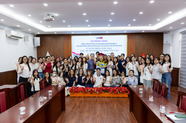 Áö³ 8¿ù µ¿¾Æ´ë ¸í¿¹¹Ú»ç ÇÐÀ§¸¦ ¹Þ±âµµ ÇÑ ÀÀ¿ÀƼÇÁ¾û¶õ ÃÑÀåÀº °³È¸»ç¿¡¼ ¡°º£Æ®³²°ú Çѱ¹ °£ ±³À°, ¹®È, °æÁ¦ ºÐ¾ß Çù·Â ÁõÁøÀ» À§ÇÑ ½ÅÃæÀÏ Àü ÃÑ¿µ»çÀÇ Çå½Å°ú ¾÷ÀûÀ» ±â¸®±â À§ÇØ Çб³ ¿ª»ç»ó ÃÖÃÊ·Î ¸í¿¹¹Ú»ç ÇÐÀ§¸¦ ¼ö¿©ÇÏ°Ô µÆ´Ù¡±¸ç ¡°½Å Àü ÃÑ¿µ»ç°¡ ¾ÕÀ¸·Îµµ ¾ç±¹ °£ ±»°ÇÇÑ ¿ìÁ¤°ú Çù·ÂÀÇ »ó¡À¸·Î ³²¾Æ ÁÙ °ÍÀ¸·Î ±â´ëÇÑ´Ù¡±°í ¸»Çß´Ù.