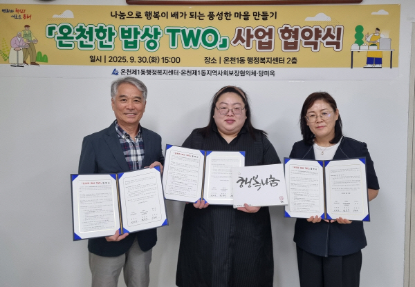 ºÎ»ê µ¿·¡±¸ ¿Âõ1µ¿ ÇàÁ¤º¹Áö¼¾ÅÍ(µ¿Àå Á¤Èñ¼÷)´Â Áö³ 9¿ù 30ÀÏ Áö¿ª»çȸº¸ÀåÇùÀÇü(À§¿øÀå º¯µ¿¼ö), ÈÄ¿ø¾÷ü ´ç¹Ì¿Á(´ëÇ¥ ¿À½Â¹Ì)°ú ¡¸¿ÂõÇÑ ¹ä»ó TWO¡¹ ¾÷¹« Çù¾àÀ» ü°áÇß´Ù°í ¹àÇû´Ù.