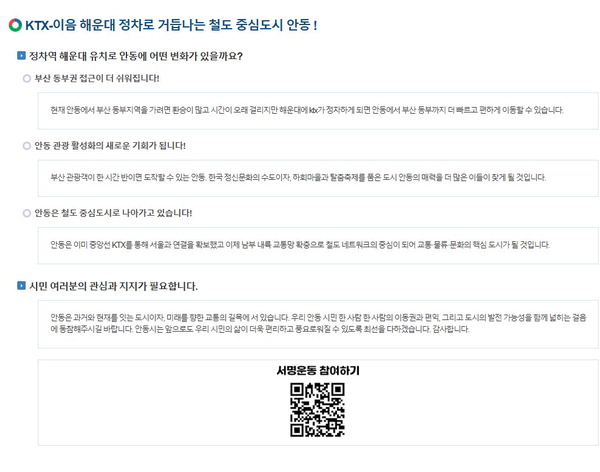 °æºÏ ¾Èµ¿½Ã ȨÆäÀÌÁö¿¡ °Ô½ÃµÈ KTX-ÀÌÀ½ ½Å±Ô Á¤Â÷¿ª ÇØ¿î´ë±¸ À¯Ä¡ È«º¸ ȸé. ¾Èµ¿½Ã ´©¸®Áý ĸó |