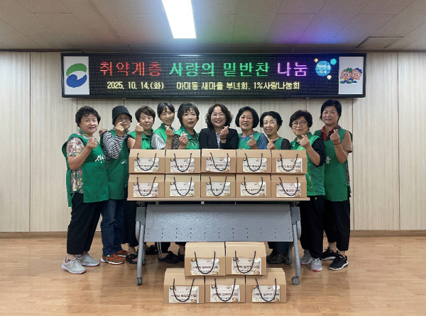 ºÎ»ê±¤¿ª½Ã ¼±¸ ¾Æ¹Ìµ¿ »õ¸¶À»ºÎ³àȸ(ȸÀå ±è¾çÈñ)´Â ¾Æ¹Ìµ¿ 1%»ç¶û³ª´®È¸(ȸÀå ÀÌÀÏ»ï)¿Í ÇÔ²² Áö³ 14ÀÏ, 5060¼¼´ë Ãë¾à°èÃþ 20°¡±¸¿¡ Á¤¼º²¯ ÁغñÇÑ ¹Ì¿ª±¹, ¶±ººÀÌ, ¹«±èÄ¡ µîÀ» Á÷Á¢ Àü´ÞÇϸç ÀÌ¿ô»ç¶ûÀ» ½ÇõÇß´Ù.