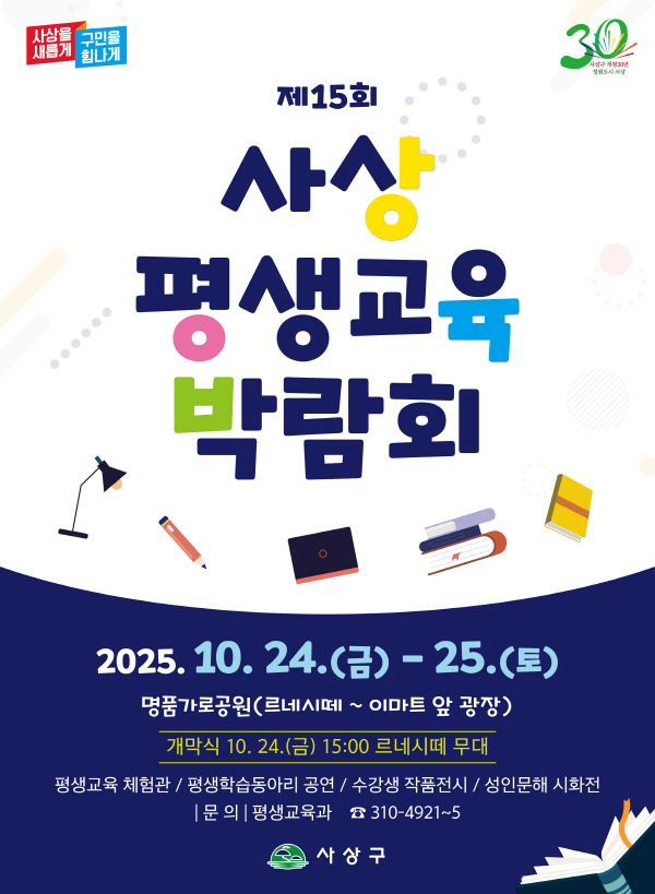 ºÎ»ê »ç»ó±¸(±¸Ã»Àå Á¶º´±æ)´Â ¿À´Â 10¿ù 24ÀϺÎÅÍ 25ÀϱîÁö ÀÌÆ²°£, ±¥¹ýµ¿ ¸£³×½Ã¶¼¿Í À̸¶Æ® ¾Õ ±¤Àå¿¡¼ ¡®Á¦15ȸ »ç»ó Æò»ý±³À° ¹Ú¶÷ȸ¡¯¸¦ °³ÃÖÇÑ´Ù.