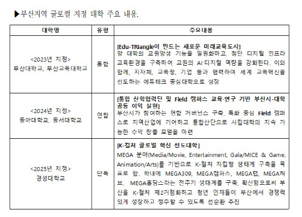 ºÎ»ê Áö¿ª ±Û·ÎÄà ÁöÁ¤ ´ëÇÐ ÁÖ¿ä »ç¾÷ ³»¿ë. µ¿¾Æ´ë Á¦°ø
