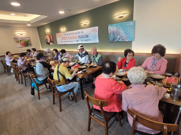ºÎ¾Ï3µ¿(µ¿Àå ÀÌ¿µÈ)°ú Çù¾àÀ» ü°áÇÑ ÈÄ ÁøÇàÇÑ µÎ ¹øÂ° ½Ä»ç ³ª´® »ç¾÷À¸·Î Àαٿ¡ °ÅÁÖÇϴ Ȧ·Î ¾î¸£½ÅµéÀ» ¸ð½Ã°í Á¤¼º µé¿© ÁغñÇÑ Á¡½ÉÀ» ´ëÁ¢ÇÏ¸ç ¾î¸£½ÅµéÀÇ ¾ÈºÎ¸¦ È®ÀÎÇÏ°í °Ç°À» ±â¿øÇß´Ù.