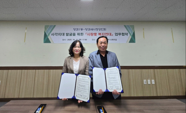 ºÎ»êÁø±¸ ´ç°¨1µ¿(µ¿Àå Ȳ¼Á¤)´Â 10¿ù 23ÀÏ ´ç°¨»õ½ÃÀå»óÀÎȸ(´ëÇ¥ ³ë¿µ¿ø)¿Í º¹Áö»ç°¢Áö´ë ¹ß±¼À» À§ÇÑ ¡®½ÃÀåäñ º¹Áö¿¬´ë¡¯ ¾÷¹«Çù¾àÀ» ü°áÇÏ¿´´Ù.