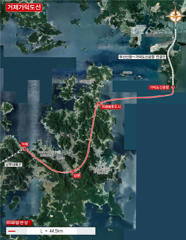 ¡®°ÅÁ¦~°¡´öµµ½Å°øÇ× ¿¬°áöµµ¡¯´Â ³²ºÎ³»·úöµµ Á¾Á¡ÀÎ °ÅÁ¦½Ã »çµî¸é¿¡¼ ½Å°øÇ× ¹èÈĵµ½Ã(Á¶¼º °èȹ Áß)¸¦ °ÅÃÄ ¹Ù´Ù °Ç³Ê °¡´öµµ½Å°øÇ×±îÁö ¿¬°áÇÏ´Â ³ë¼±ÀÌ´Ù. ÃÑ ¿¬Àå 44.5§°·Î »ç¾÷ºñ´Â 2Á¶ 5447¾ï ¿øÀÌ ¼Ò¿äµÉ °ÍÀ¸·Î ÃßÁ¤µÈ´Ù.