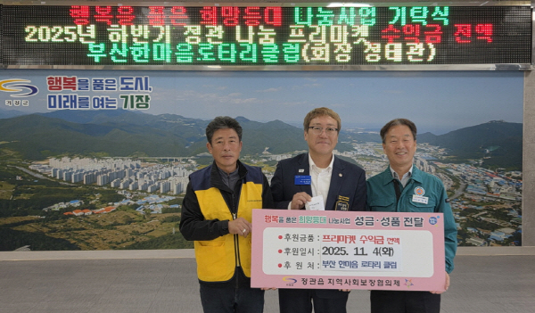±âÀ屺 Á¤°üÀ¾ÇàÁ¤º¹Áö¼¾ÅÍ(À¾Àå ¼Û¿µÁ¾)´Â Áö³ 4ÀÏ ºÎ»êÇѸ¶À½·ÎŸ¸®Å¬·´(ȸÀå Á¤Å°ü)ÀÌ °ü³» Àú¼ÒµæÃþ Áö¿øÀ» À§ÇØ ¼º±Ý 748,700¿øÀ» ±âŹÇß´Ù°í 6ÀÏ ¹àÇû´Ù.