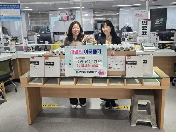 ¿¬Á¦±¸ ¿¬»ê4µ¿(µ¿Àå À̰¡¹Ì)Àº ±Ý¼Û¿ä¾çº´¿ø(´ëÇ¥ÀÌ»ç Àü¿ëÀç)À¸·ÎºÎÅÍ 90¸¸ ¿ø »ó´çÀÇ °Ü¿ï³»ÀÇ 50¹úÀ» ±âŹ¹Þ¾Ò´Ù°í 6ÀÏ ¹àÇû´Ù.