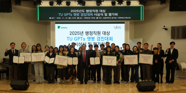 µ¿¸í´ë´Â AI ÇàÁ¤Çõ½ÅÀ» À§ÇÑ ¡®2025 ÇàÁ¤Á÷¿ø TU GPTs 꺿 °æÁø´ëȸ ½Ã»ó½Ä ¹× Æò°¡È¸¡¯¸¦ Áö³ 11¿ù 10ÀÏ ´ëÇк»°ü¿¡¼ °³ÃÖÇß´Ù. Áö³ 6°³¿ù°£ ÃßÁøÇؿ ÇàÁ¤Á÷¿ø ´ë»ó AI ¿ª·® °È ±³À°ÀÇ ÃÖÁ¾ ¼º°ú¸¦ °øÀ¯Çϰí, AI ±â¹Ý ÇàÁ¤Çõ½ÅÀÇ ¹æÇâÀ» ¸ð»öÇϱâ À§ÇÑ ÀÚ¸®´Ù. À̳¯ ÀÌ»óõ µ¿¸í´ë ÃÑÀåÀ» ºñ·ÔÇÑ º»ºÎ º¸Á÷ÀÚ, °æÁø´ëȸ Âü°¡ÀÚ µî 40¿© ¸íÀÌ Âü¼®ÇÑ °¡¿îµ¥ ÃÑÀå °Ý·Á»ç, °æ°úº¸°í, ½Ã»ó, ¼ö»óÆÀ ¼Ò°¨ ¹ßÇ¥, ½É»çÀ§¿ø Æò°¡ ¹× Çǵå¹é µîÀÇ ¼ø¼·Î ÁøÇàµÆ´Ù. Á÷¿øµéÀº Á÷Á¢ ±âȹÇϰí Á¦ÀÛÇÑ Ãªº¿À» ¼±º¸ÀÌ¸ç ¡®AI¸¦ Ȱ¿ëÇÑ ½º¸¶Æ® ÇàÁ¤¡¯ÀÇ »õ·Î¿î °¡´É¼ºÀ» º¸¿©Áá´Ù.