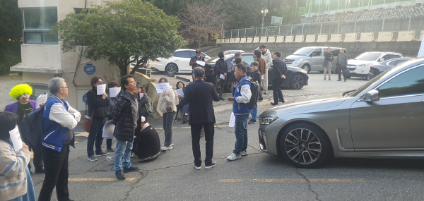 ÀÌ»çȸ ¼ÒÁý ¼Ò½ÄÀÌ ¾Ë·ÁÁöÀÚ ÇлýµéÀº Çб³¿¡ ¸ð¿© Æó±³ ¹Ý´ë ¸ñ¼Ò¸®¸¦ ³Â´Ù. ¸¸Çеµ¸¦ Áß½ÉÀ¸·Î ÇÑ ºñ»ó´ëÃ¥À§¿øÈ¸ ¾à 30¸íÀÌ ´çÀÏ ¿ÀÈÄ 3½Ã30ºÐ Çб³ º»°ü ¾Õ¿¡¼­ ÃÑÀå »çÅð¿Í ÀÌ»çÀå ¸é´ã µîÀ» ¿ä±¸ÇÑ °ÍÀÌ´Ù. ÀÌ»çȸ´Â ´çÀÏ ¿ÀÈÄ 4½Ã²² ³¡³µ´Âµ¥, ºñ´ëÀ§ ÃøÀÌ Çб³¸¦ ºüÁ®³ª°¡´ø ÀÌ»çµéÀÇ Â÷·®À» °¡·Î¸·¾Æ Ç×ÀÇÇÏ´ø Áß ¿©¼º ¸¸Çеµ ÇлýÀÌ ½Ç½ÅÇØ ±¸±ÞÂ÷°¡ Ã⵿Çß´Ù. ÀÌ»çÀå ¸é´ã ¶ÇÇÑ ºÒ¹ßµÇ¸é¼­ ºñ´ëÀ§´Â À̳¯ ¿ÀÈÄ 5½Ã35ºÐ²² ÇØ»êÇß´Ù.