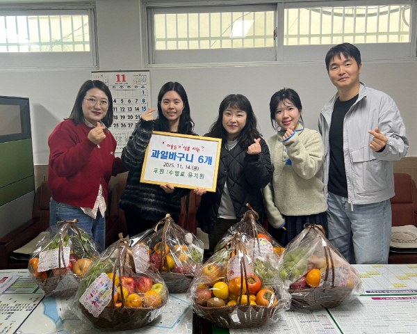 À̹ø ³ª´®Àº ¼ö¿µ·Î À¯Ä¡¿ø ¾ÆÀ̵éÀÌ °¡Á¤¿¡¼ °úÀÏÀ» ½Ê½ÃÀÏ¹Ý ¸ð¾Æ ÁغñÇϰí, À̸¦ À¯Ä¡¿ø¿¡¼ ¼±»ý´Ôµé°ú ÇÔ²² °úÀϹٱ¸´Ï¸¦ ¸¸µå´Â ¹æ½ÄÀ¸·Î ÀÌ·ç¾îÁ³´Ù. ¾ÆÀ̵éÀÌ ÀÛÀº ¼ÕÀ¸·Î Á¤¼º²¯ ´ã¾Æ ¸¸µç °úÀϹٱ¸´Ï´Â ¼ö¿µµ¿ ÇàÁ¤º¹Áö¼¾Å͸¦ ÅëÇØ °ü³» ¾Ï Åõº´ ÁßÀΠȦ·Î ¾î¸£½Å 6°¡±¸¿¡ Àü´ÞµÇ¾ú´Ù.