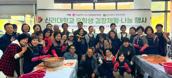 Áö³ 22ÀÏ ½Å¶ó´ë Æò»ý±³À°¿ø 50+»ý¾ÖÀç¼³°è´ëÇÐ µµ½Ã³ó¾÷µ¿¾Æ¸® ȸ¿øµéÀº ¡®±èÀå üÇè ¹× ³ª´® Çà»ç¡¯¸¦ °³ÃÖÇÏ¿© ¿Ü±¹ÀÎ À¯Çлýµé¿¡°Ô ±èÀåüÇè ±âȸ¸¦ Á¦°øÇϰí, ¶ó¸é¡¤Áï¼®¹ä µî ½Ä·áǰÀ» Àü´ÞÇß´Ù.