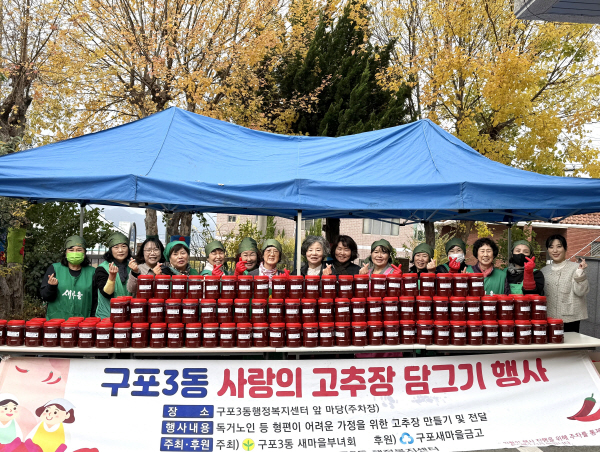 À̹ø Çà»ç´Â ±¸Æ÷ »õ¸¶À»±Ý°í(ÀÌ»çÀå Àå»ó±¹)ÀÇ ÈÄ¿øÀ¸·Î ÁøÇàµÇ¾úÀ¸¸ç, Áö¿ªÀÇ ³ª´® ¹®È È®»ê¿¡ Àǹ̸¦ ´õÇß´Ù. »õ¸¶À»ºÎ³àȸ ȸ¿øµéÀº À̸¥ ¾ÆÄ§ºÎÅÍ Á¤¼º²¯ Àç·á¸¦ ÁغñÇÏ°í °íÃßÀåÀ» Á÷Á¢ ´ã°¡, Á¤¼º°ú ¿ÂÁ¤À» °¡µæ ´ãÀº °íÃßÀåÀ» Áö¿ª ³» Ãë¾à°èÃþ 80¿© ¼¼´ë¿¡ Àü´ÞÇÒ ¿¹Á¤ÀÌ´Ù.