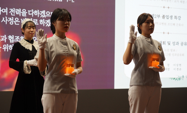 À̹ø Çà»çÀÇ 1ºÎ´Â ³ªÀÌÆÃ°ÔÀÏ ¼±¼¿Í Ãà»ç, ÃàÇϰø¿¬ ¼øÀ¸·Î ÁøÇàµÆ´Ù. ÇлýµéÀº ÃкÒÀ» ¹àÈ÷¸ç ³ªÀÌÆÃ°ÔÀÏÀÇ Á¤½ÅÀ» µÇ»õ±â°í, »ý¸íÀ» Á¸ÁßÇϸç ȯÀÚ ¾ÈÀüÀ» ÃÖ¿ì¼± °¡Ä¡·Î »ï´Â Àü¹®Á÷ °£È£»ç·Î ¼ºÀåÇϰڴٴ åÀÓ°¨°ú ¼Ò¸í ÀǽÄÀ» ¸¶À½¿¡ »õ°å´Ù.