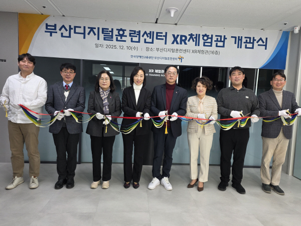 Çѱ¹Àå¾ÖÀΰí¿ë°ø´Ü ºÎ»êº»ºÎ ºÎ»êµðÁöÅÐÈÆ·Ã¼¾ÅÍ´Â 10ÀÏ ¿ÀÀü ¼¾ÅÍ 16Ãþ¿¡¼­ ¡®XRüÇè°ü °³°ü½Ä¡¯À» °³ÃÖÇϰí, µðÁöÅÐ Æ®À© ±â¹Ý °¡»óÀ¶ÇÕ È¯°æÀ» Á÷Á¢ °æÇèÇÒ ¼ö ÀÖ´Â ½Ç°¨Çü üÇè°ø°£À» º»°Ý ¿î¿µÇÑ´Ù°í ¹àÇû´Ù. °³°ü½ÄÀº XR üÇè°ü ¼³Ä¡¸¦ ÅëÇØ AI(ÀΰøÁö´É) ½Ã´ë µðÁöÅÐ ¿ª·®À» °­È­Çϰí ÇнÀ¡¤ÈÆ·Ã µ¿±â¸¦ ³ôÀÌ´Â ÇÑÆí, Áö¿ª»çȸ À¯°ü±â°ü¿¡ XR¡¤µðÁöÅÐ Æ®À© ±â¼úÀÇ È°¿ë °¡´É¼ºÀ» ¾Ë¸®°í ±³·ùÀÇ ÀåÀ» ¸¶·ÃÇϱâ À§ÇØ ÃßÁøµÆ´Ù.