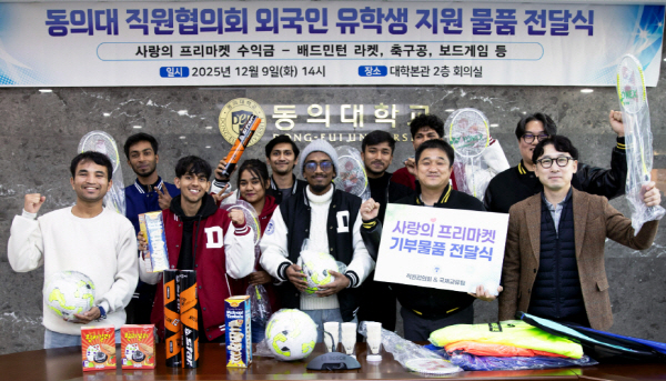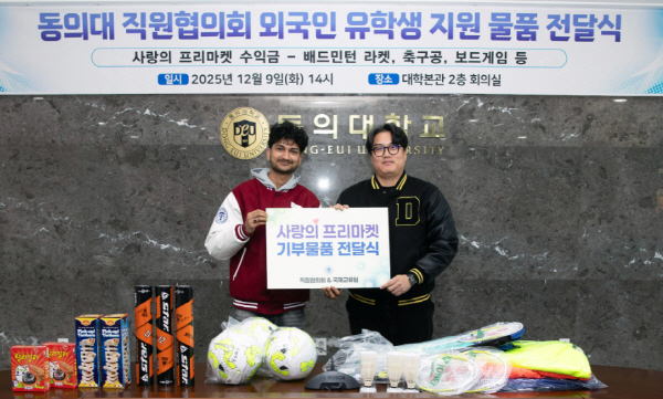 µ¿ÀÇ´ëÇб³ Á÷¿øÇùÀÇȸ(ȸÀå ±èÅÂÈÆ)´Â 12¿ù 9ÀÏ º»°ü 2Ãþ ȸÀǽǿ¡¼ ¿Ü±¹ÀÎ À¯Çлý ȸÀå´Ü¿¡°Ô Ä·ÆÛ½º »ýȰ ÀûÀÀÀ» µ½±â À§ÇÑ ½ºÆ÷Ã÷ ¿ëǰ µîÀ» ¼±¹°·Î Àü´ÞÇß´Ù.